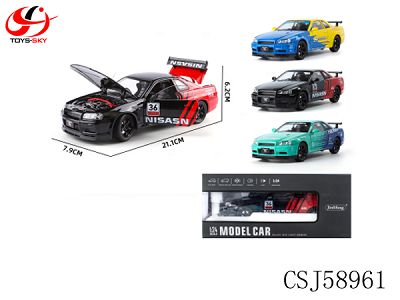1比32 GTR天际线拉花版合金车单只盒回力合金车模