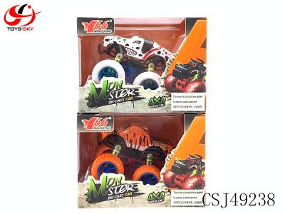 1:34Q版合金惯性四驱越野大轮带弹簧避震(狗/虎)动物车2款每款2色混装