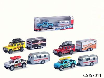 Alloy Huili pickup truck 2 trailers