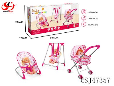 组合三件套(铁推车,秋千,摇椅)+14"IC公仔