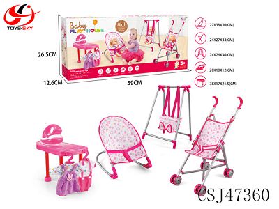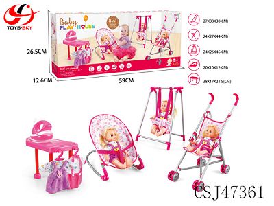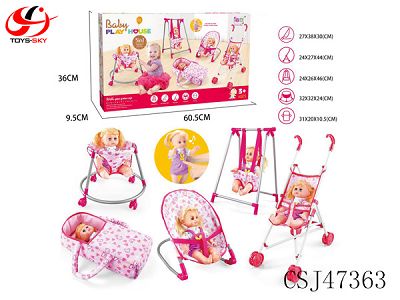 组合五件套(塑料推车,秋千,摇椅,学步车,手提篮)+14"IC公仔