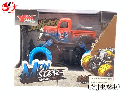 1:34Q版合金前后回力带弹簧避震攀爬大轮(皮卡)2开门老爷车1款2色混装