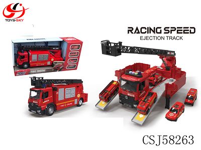 产品名称: 消防主题场景收纳弹射货柜车(红)