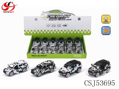 1: 36 ALLOY RECOIL SIMULATION LEXUS, TOYOTA CAMOUFLAGE CAR WITH LIGHT AND MUSIC 12PCS