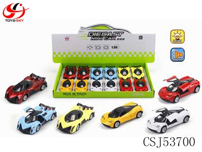 1: 36 ALLOY RECOIL SIMULATION PAGANI AND LAMBORGHINI MUSIC WITH LIGHT 12PCS
