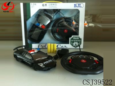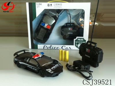LAMBORGHINI 1.: 24 FOUR REMOTE CONTROL POLICE CAR WITH THE STEERING WHEEL LIGHTS PACKAGE (BODY WITH BATTERY DISTRIBUTION CHARGER) BLACK